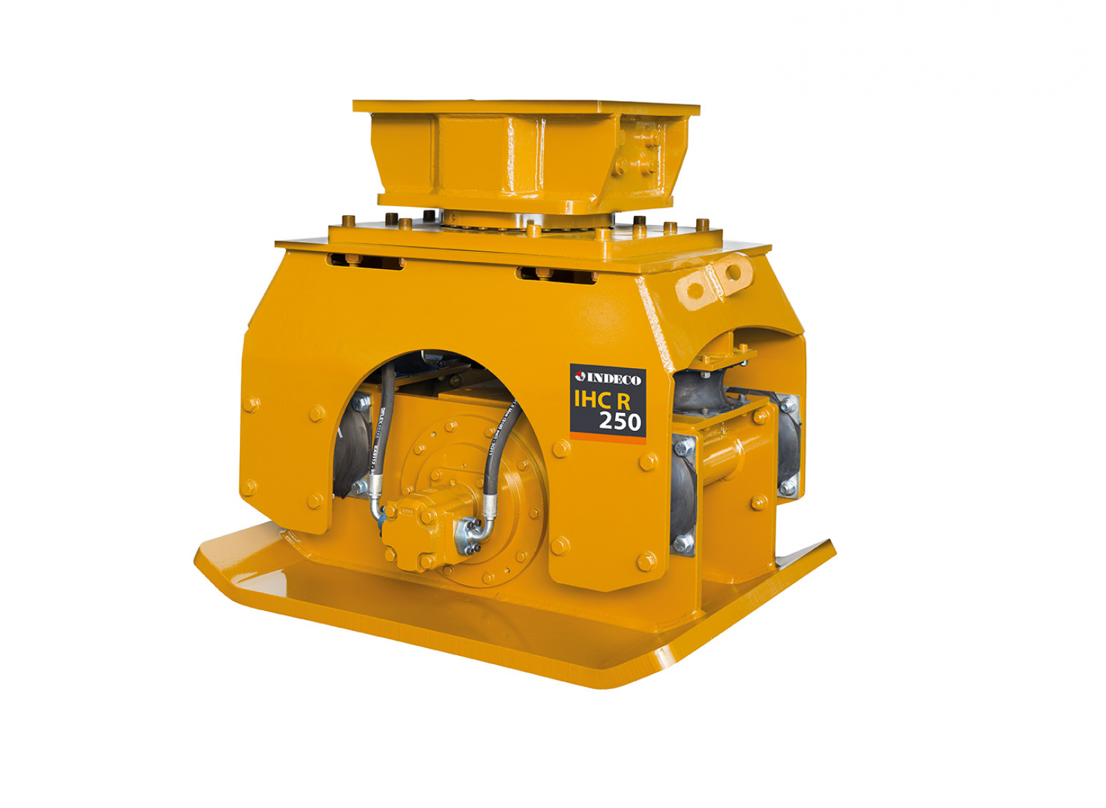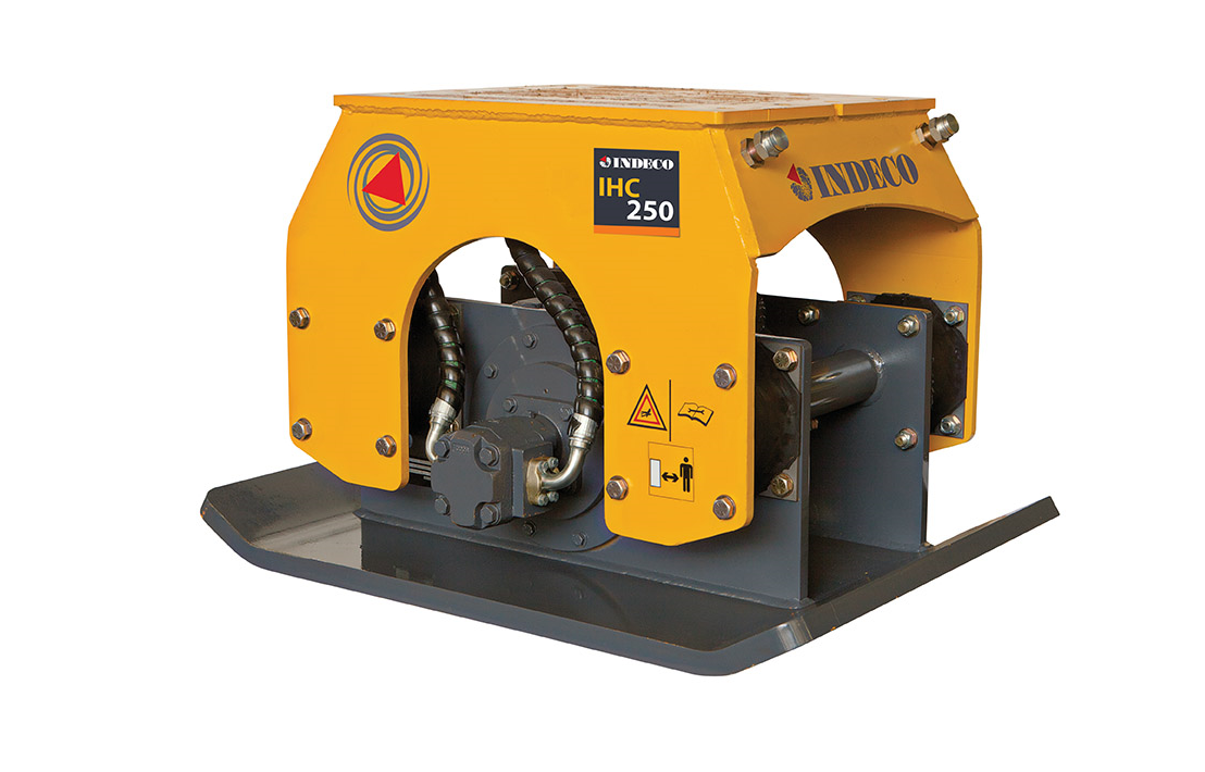 Les compacteurs Indeco IHC offrent une capacité de compactage élevée en des temps très courts, remplaçant les équipements manuels, pénibles et dangereux, ainsi que les rouleaux automoteurs lors d’opérations en terrain pentu, diminuant le risque de retournement. La plaque d’acier du compacteur supporte, de façon combinée, aussi bien la force dynamique d'un système vibrant obtenue hydrauliquement, que le poids statique du bras de l'engin porteur. Bien entendu, les forces dynamiques doivent avoir une puissance suffisante pour faire vibrer efficacement la plaque d'acier. Afin de garantir les meilleurs résultats, les compacteurs Indeco (montés directement sur le bras des engins porteurs) sont équipés d'un moteur hydraulique pourvus de coussinets excentriques à bain d'huile. Un tel système hydraulique met en équilibre force de compactage et vitesse de vibration afin d'obtenir la profondeur de pénétration suffisante pour diminuer les espaces vides et maximiser les déplacements de matériaux.