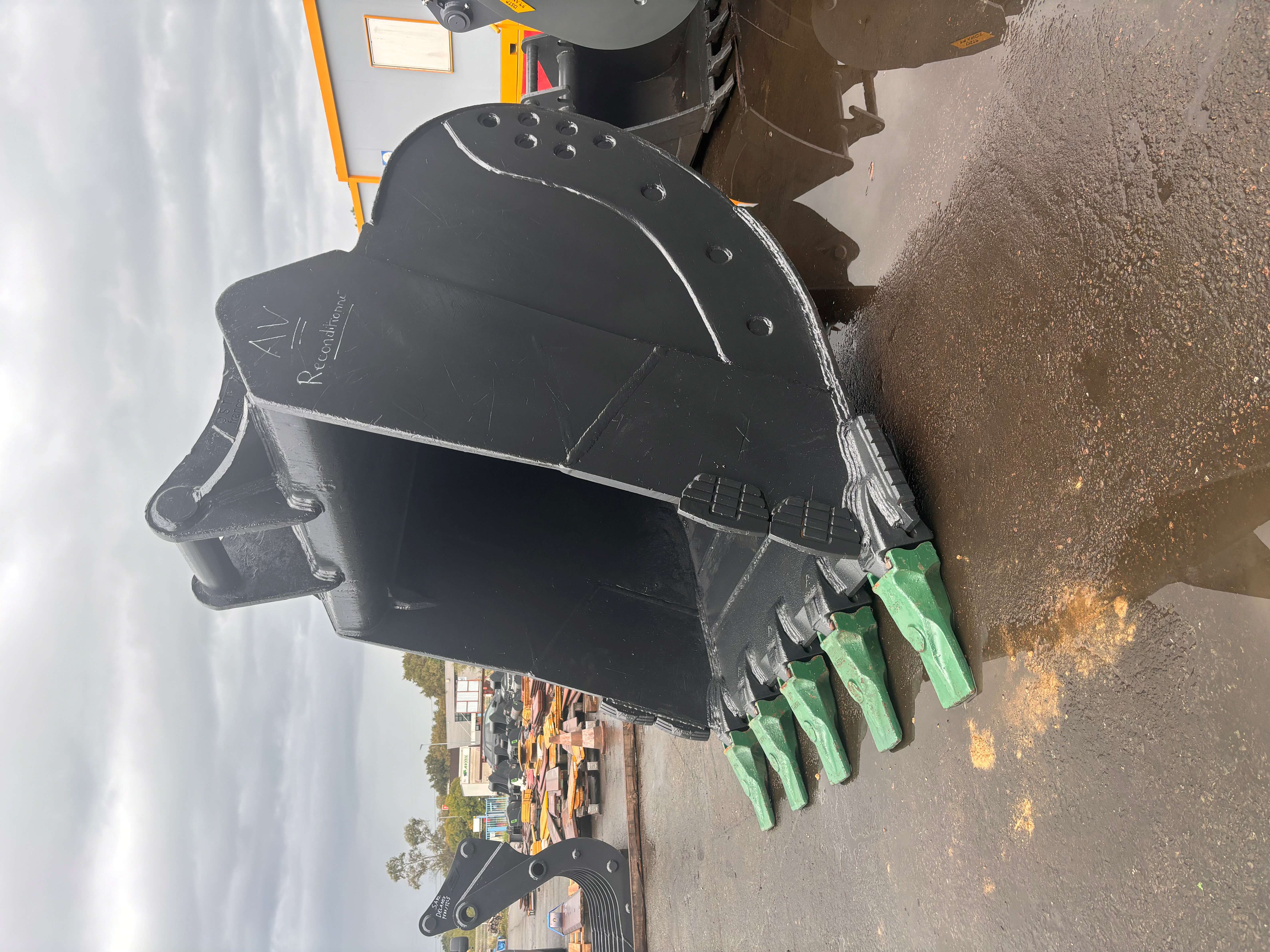 Ce godet, véritable concentré de robustesse, a été conçu pour résister aux conditions de travail les plus extrêmes. Il a subi une rénovation complète dans nos ateliers, lui redonnant une jeunesse et une efficacité optimales. Son blindage intérieur et extérieur, associé à ses couteaux renforcés par des boucliers soudés, en font un allié de choix pour les travaux les plus exigeants : terrassement, démolition, chargement de matériaux...