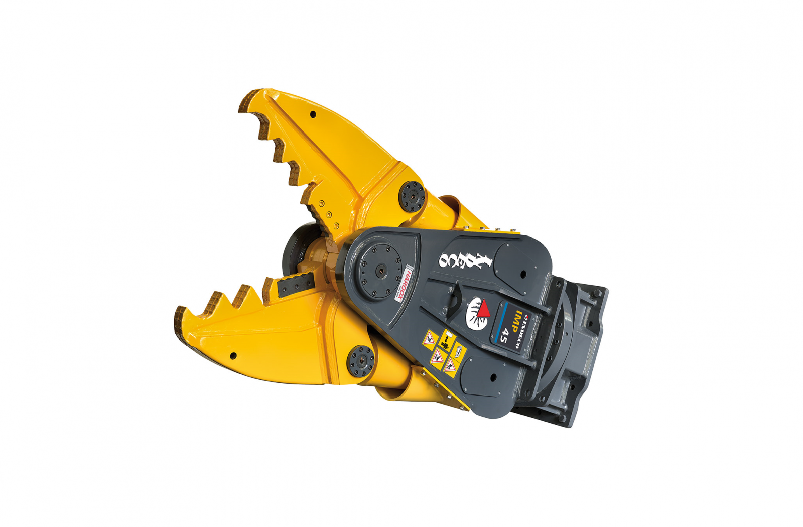Réalisé avec des matériaux technologiques de pointe, tels que les aciers spéciaux ultra-résistants HARDOX® qui rendent sa structure indéformable, le multifonction Indeco est capable de supporter de fortes pressions, des érosions, des abrasions et des utilisations prolongées dans les conditions de travail les plus hostiles. Des caractéristiques particulières telles que le design spécial des mâchoires, le mécanisme de rotation certifié (commun à tous les autres produits rotatifs Indeco) et les dents de la mâchoire mobile interchangeables dans la configuration broyeur, contribuent à l’excellent rendement du produit dans toutes les applications.