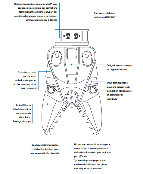 Dans la configuration « cisailles » certaines caractéristiques des cisailles ISS ont été reprises, dont: les géométries de coupe, la configuration des couteaux, le système d’attaque exclusif.